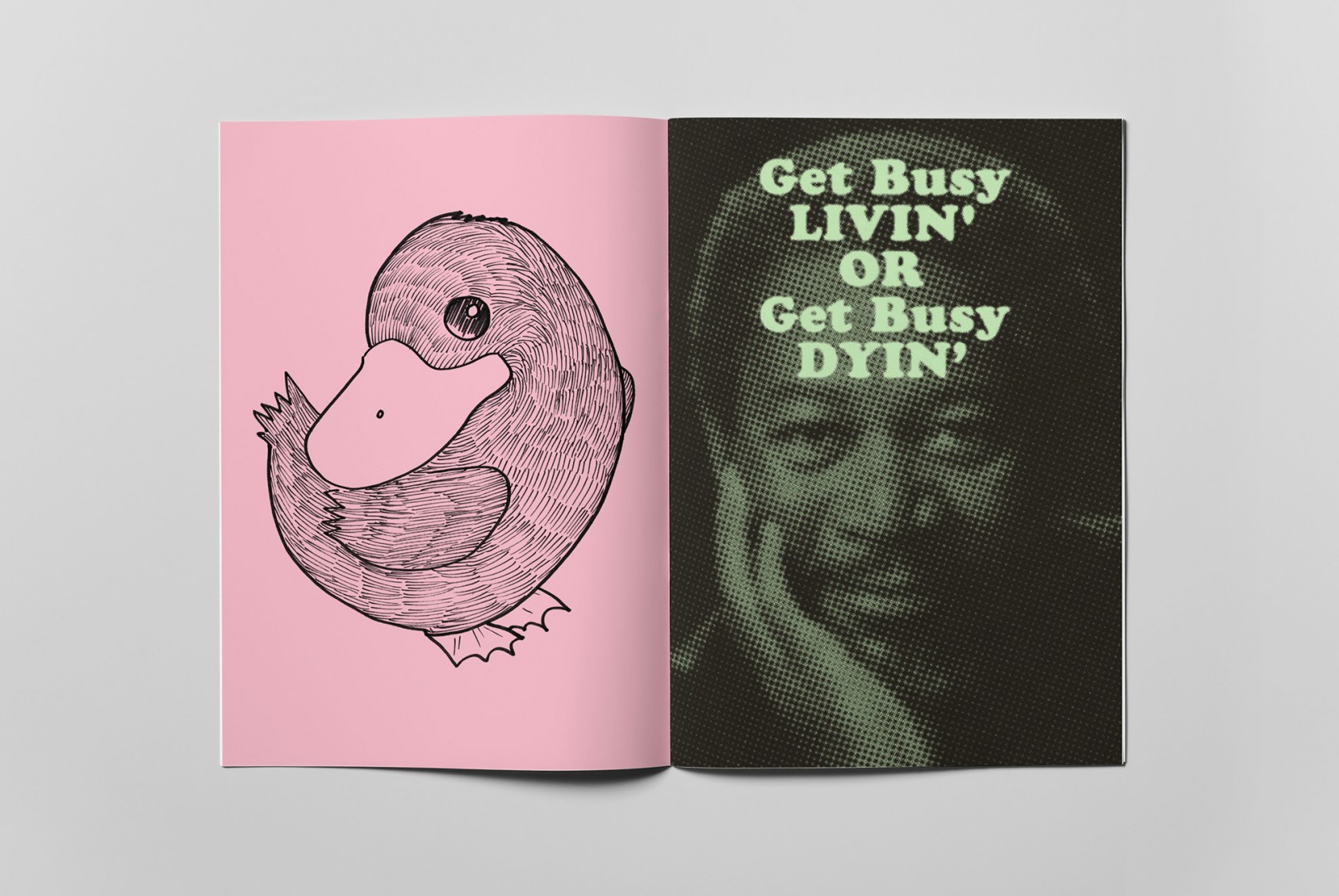 The booklet came packaged with my business card and a selection of badges, making it a mini introduction to my work as a graphic designer and illustrator.